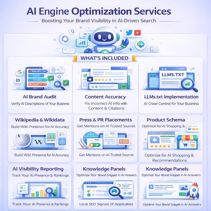 AI Optimization (AIO) is a complete strategy to make your brand visible, trusted, and recommended across every AI platform your customers use.